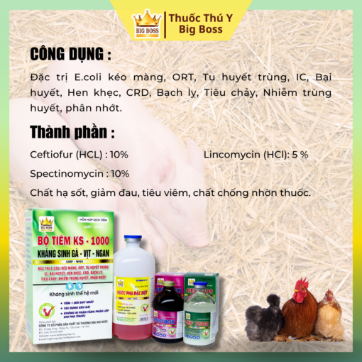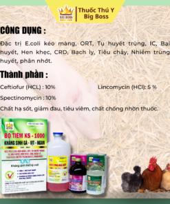 Đặc trị E.coli kéo màng, ORT, Tụ huyết trùng, IC, Bại huyết, Hen khẹc, CRD, Bạch lỵ, Tiêu chảy, Nhiễm trùng huyết, phân nhớt.