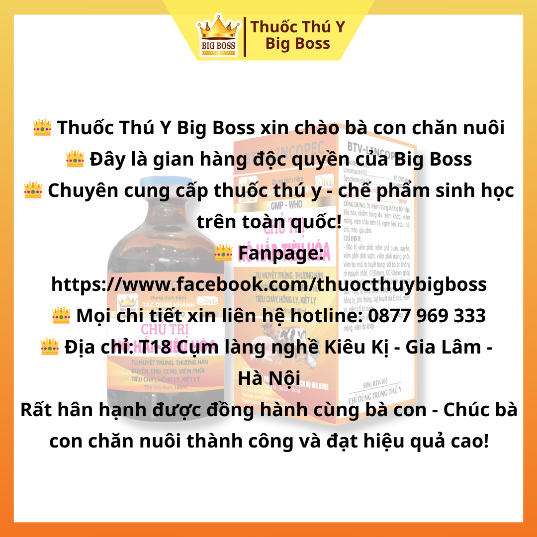 – Lợn, bê, nghé, dê: 1ml/8 – 10kg thể trọng/ngày