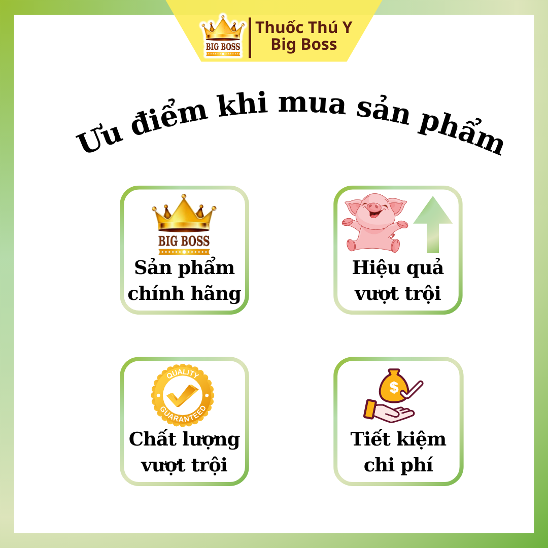 Tăng cường khả năng miễn dịch, giải độc, giúp bảo vệ cơ thể vật nuôi, Tăng năng suất chăn nuôi, tăng trọng nhanh,